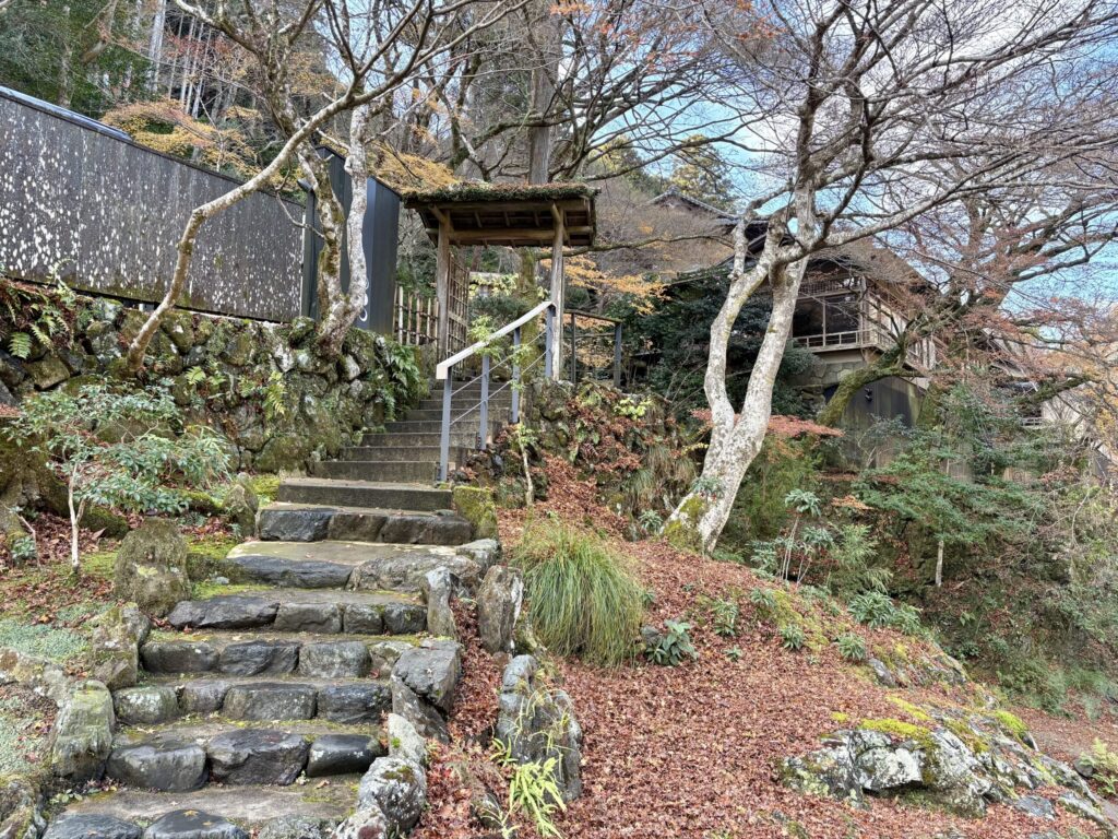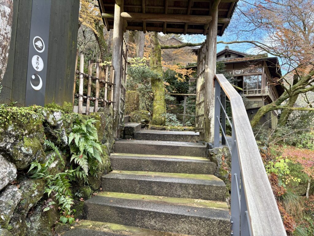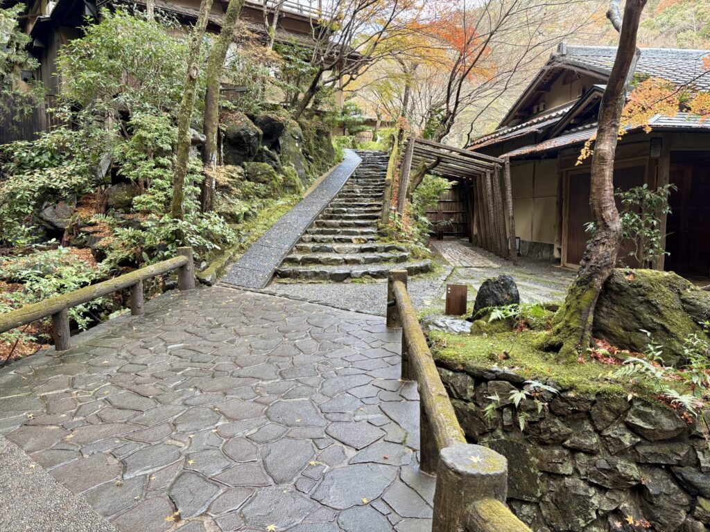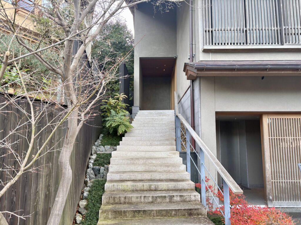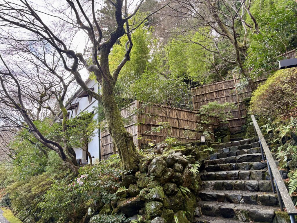 星のや京都桟橋から入口へ続く階段