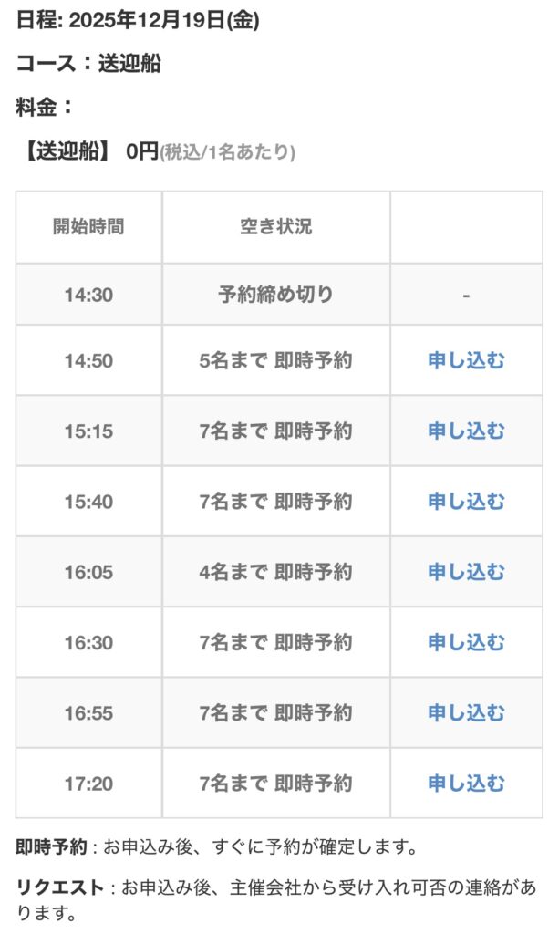 送迎船の時刻表