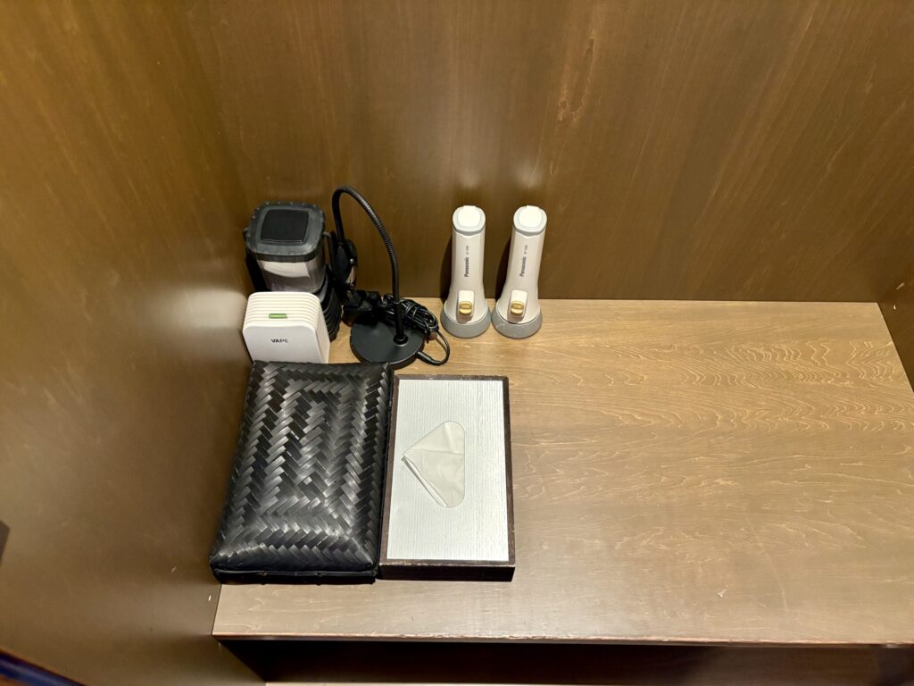 客室内のライトは気持ちが落ち着ける暗さ、読書はライトを点灯して。