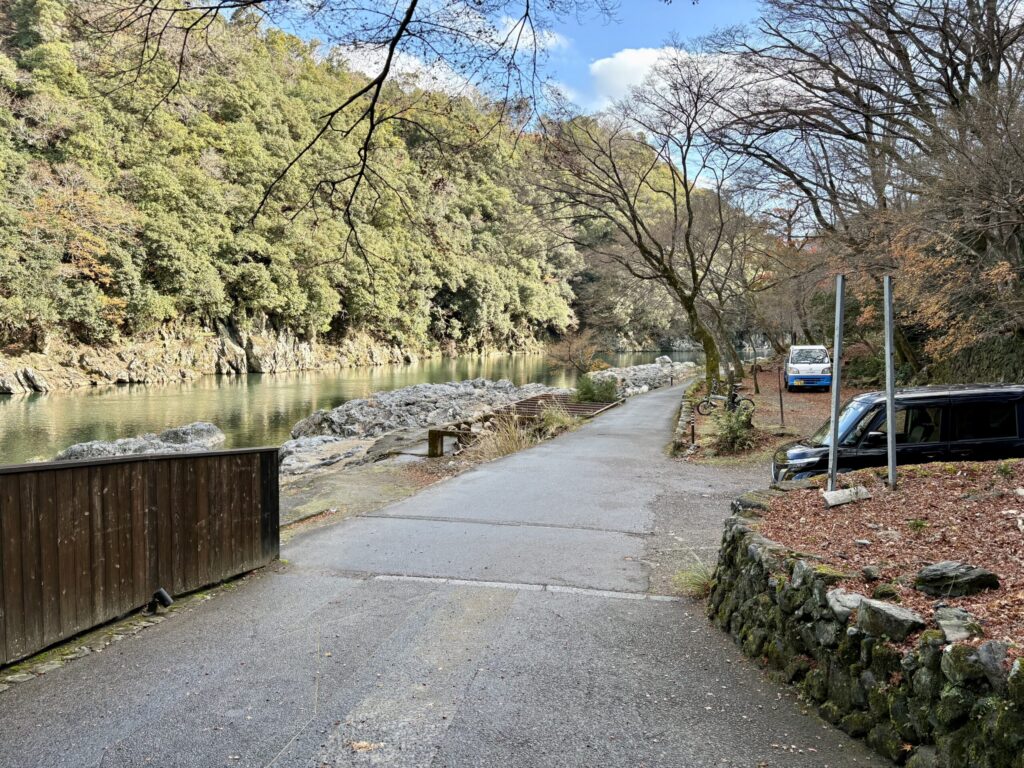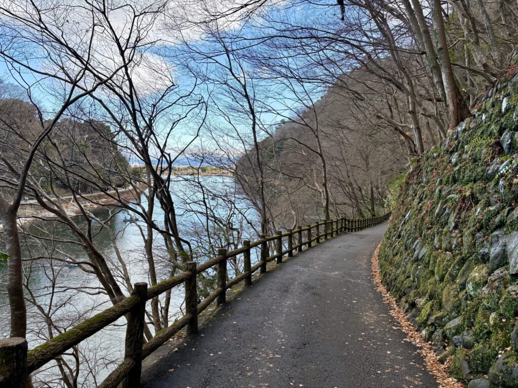 この遊歩道は嵐山(星のや京都登り桟橋)に繋がってます。(半分くらいしか行ってないけど)