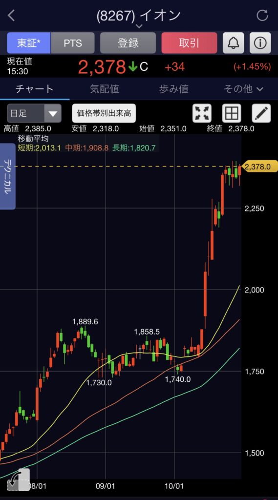 2025年10月29日のイオン株価はこちら↓