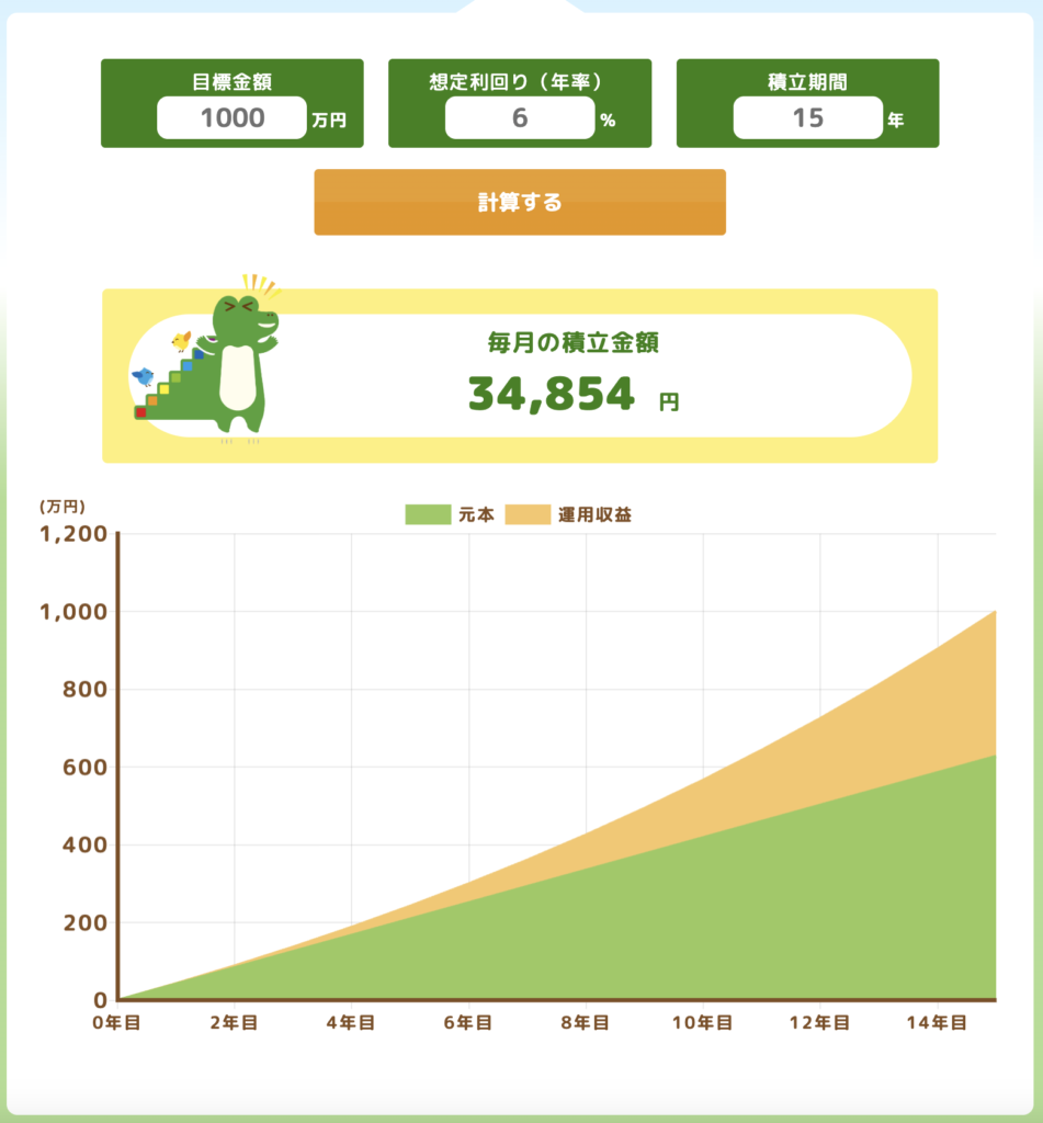 次に「毎月いくら積み立てる?」をこのようにシミュレーションしてみると↓